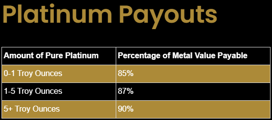 Platinum Bullion / Coins get payouts up to 95% of metal value