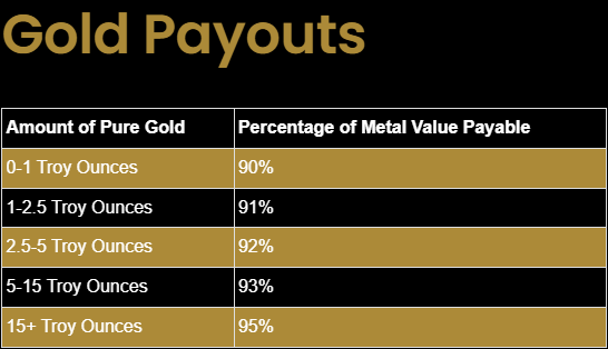 Payouts might be lower for alloys containing under 5% weight in gold and 50% weight in silver (gold filled material is usually 2-3% gold)