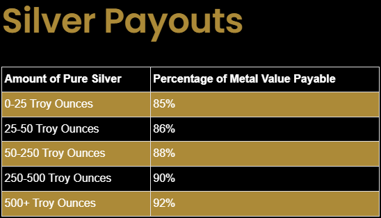 Silver Bullion / Coins get payouts up to 100% of metal value