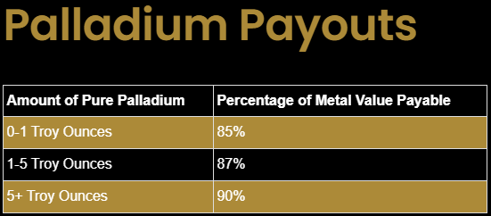 Palladium Bullion / Coins get payouts up to 95% of metal value